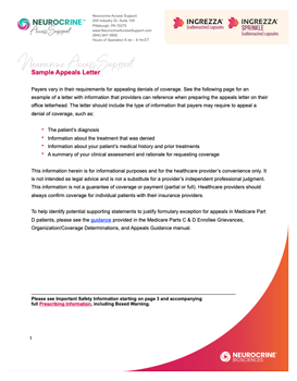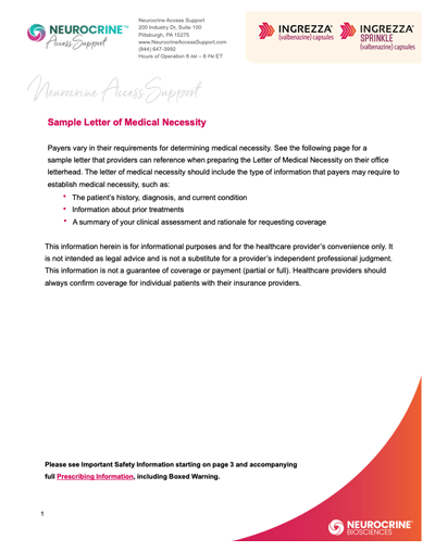 Neurocrine Access Support was created to ensure that you have all the information that you, your staff, and your patients need to access INGREZZA capsules or INGREZZA SPRINKLE capsules. We're here to support you every step of the way so that you can focus on what really matters.